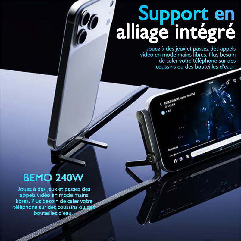 استمتع بالشحن السريع والراحة المثالية مع حامل الهاتف المزود بشاحن سريع 240 واط. يتميز هذا الحامل بموصل زاوية لتسهيل الاستخدام أثناء الشحن، وكابل متين مع دعم مدمج، ومفصلات معززة لتدوم طويلًا.