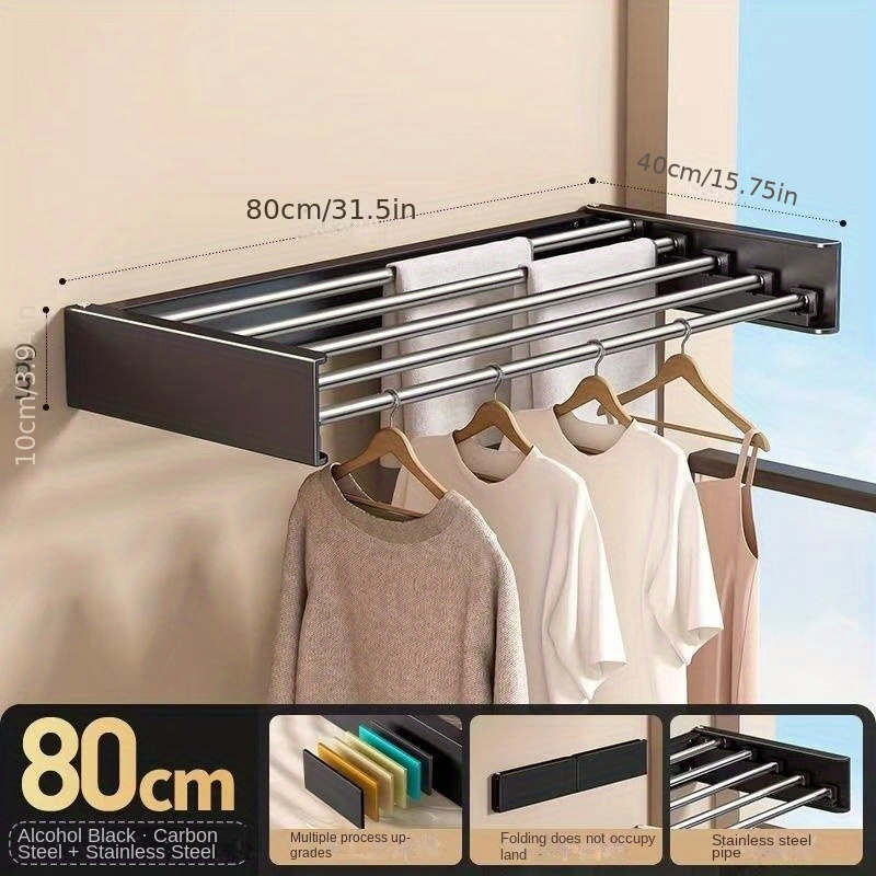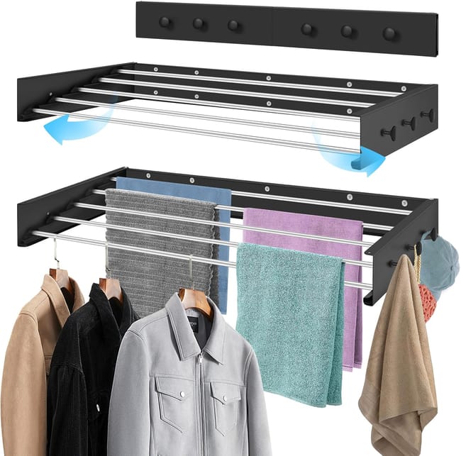 مجفف جداري قابل للطيّ يُثبّت بسهولة على الحائط أو خلف الباب، يوفّر المساحة ويُطوى بعد الاستخدام دون أن يشغل حيزًا